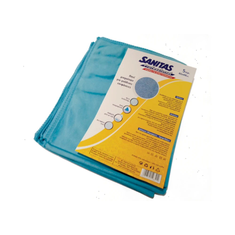 Πανί Sanitas Τζαμιών Microfiber Μπλε 5Τεμ